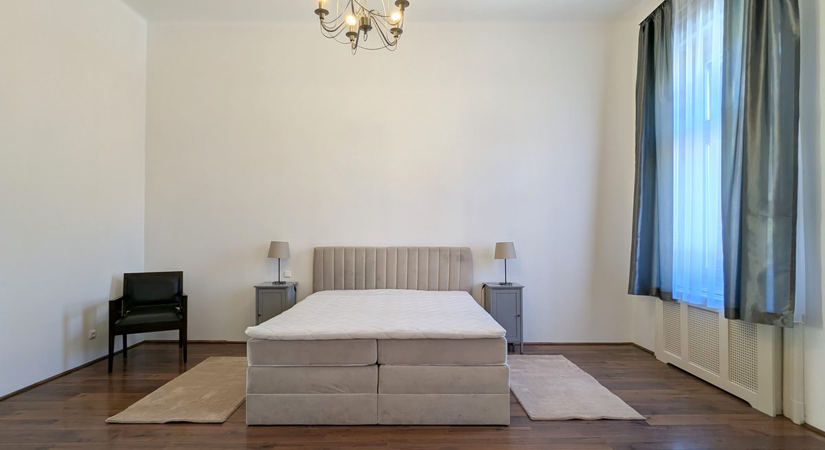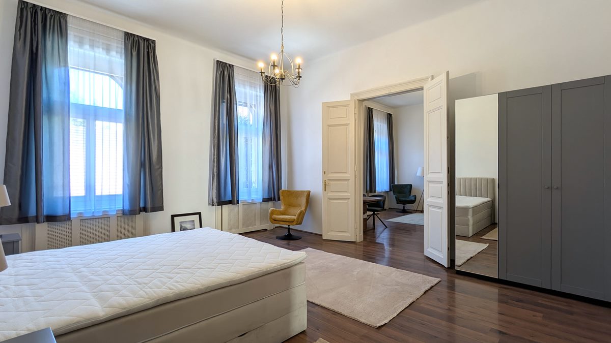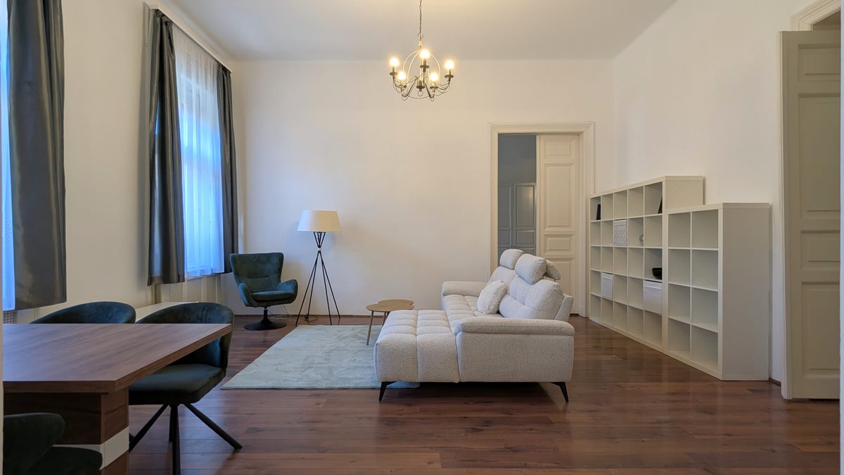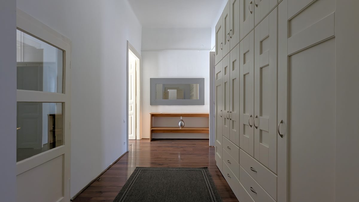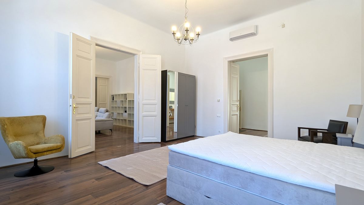 2 bedroom apartment is available for rent in Budapest. The property is located in the 9th District of Budapest, in Raday street which is famous for its cafes and restaurants, and the National Museum, Semmelweis and Corvinus Universities are within a couple of minutes of walk. Excellent public transport options with metro line 3 and 4, tram line 47-49, and several buses. The apartment is situated on 1st floor of a well-kept, classical building, it consists of a large living room, separate, fully equipped kitchen with dining area, 2 bedrooms and 2 bathrooms. Fully furnished and equipped, it is available immediately